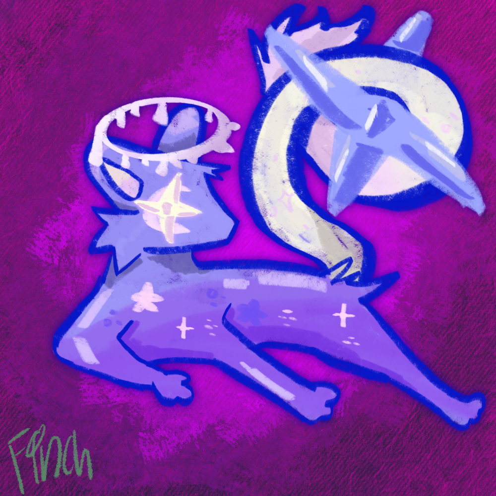 AThe godly cat that floats through the stars. Stars awake in its trail of dust. Yet it also eats the light of some, the circle of life continues. May guide lost travelers and bestow wise advices, but rarely does it ever talk to one. Please go to its brother instead for therapy.