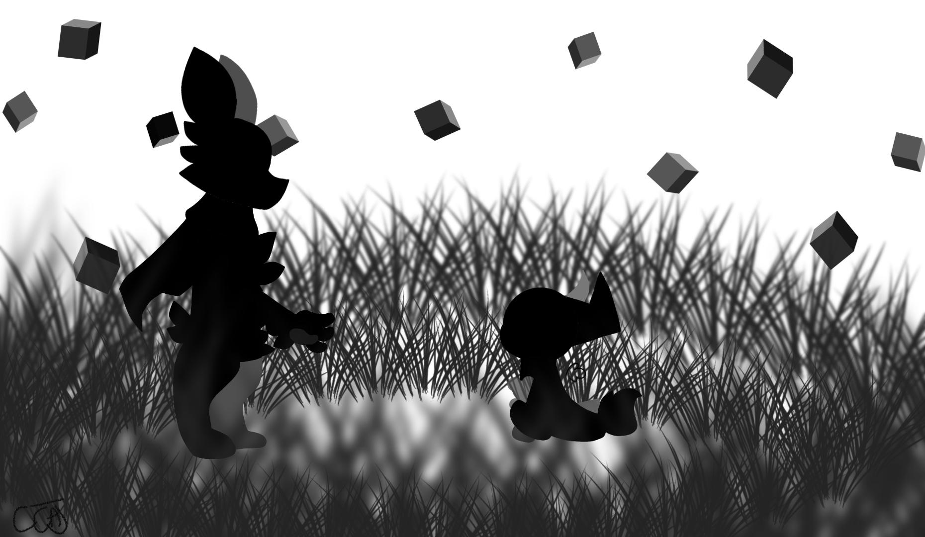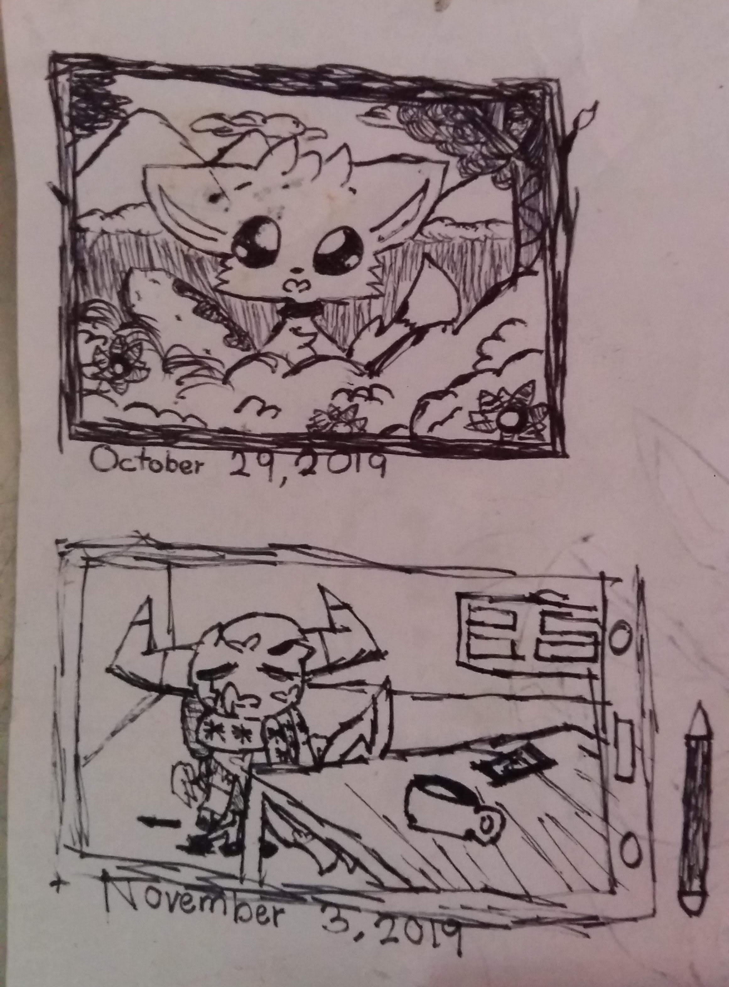 A week came and they were playing around, suddenly the portal opens with no one around but them. Her friend went to the glorifying open portal, a dark shadow came out and attempted to kill her dear friend. She pushed the friend away from danger and grabbed her hands then ran away. Went into a mythical forest with no directions. Her friend doesn't know this place or know what to do, and I ask if we could try making a burrow as a house. She agrees and so do I, built a lovely cute small home for us to live. Inside is questionably cold but they're able to withstand it.