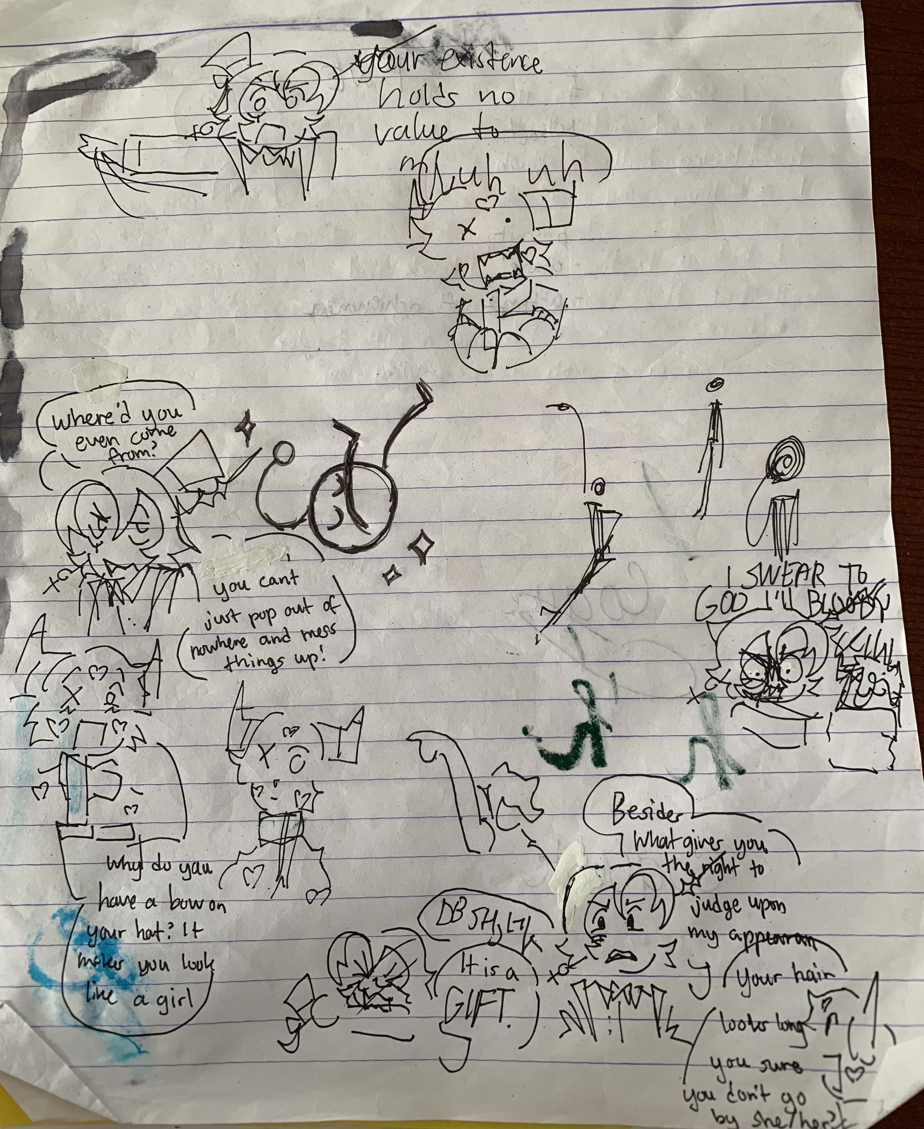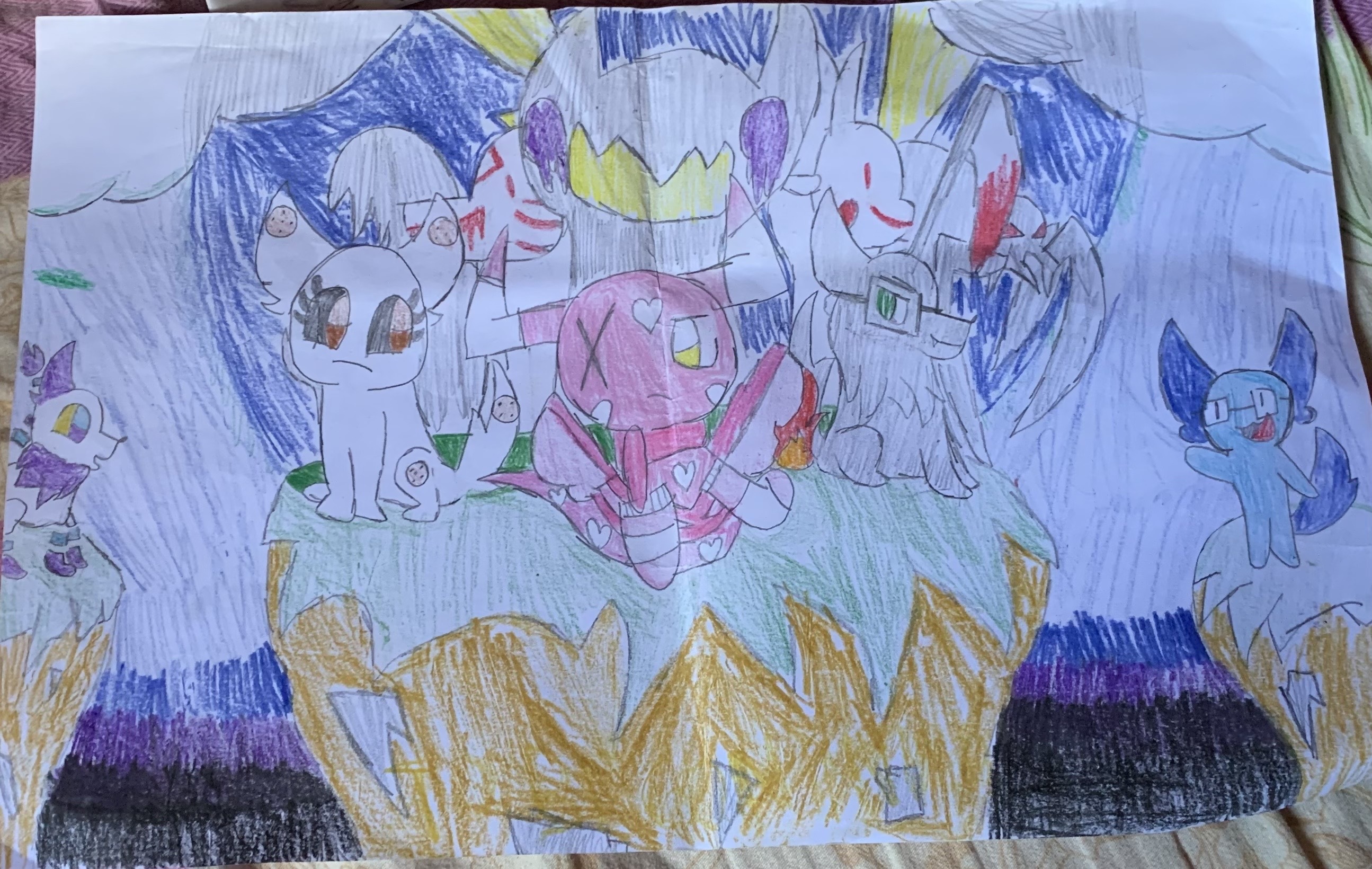 Several hours later, she woke up in distress. Found herself in land, in a different place. She starts to be filled with solid color, becomes heavier than air. She's no longer non existant yet her existance is still unknown at that time. Beauty surrounds the place, a unique diversity of life among the planet. A fellow animal found her under a tree with a mysterious sight of the crash land. It lended her a hand, she accepts the kind offer. It gives her a tour of the area, shared knowledge and gave her a home in a little town next to a river. She enjoys her time in this world and sometimes stays up all night to watch the stars in the bright night sky.