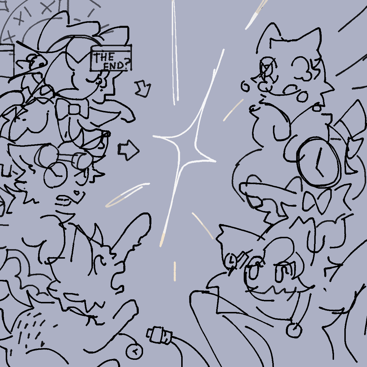 - A series of creatures that pop out from the mess Cmandy left—not necessarily Pcguy's fault or anyone else.
