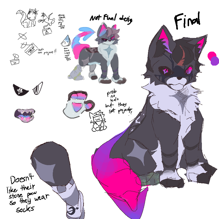 the part he lives in are full of noise and colors which fascinates him. the urge to drag his paws through the flow of discord and watch it dance through his senses. something he inherit from his family.