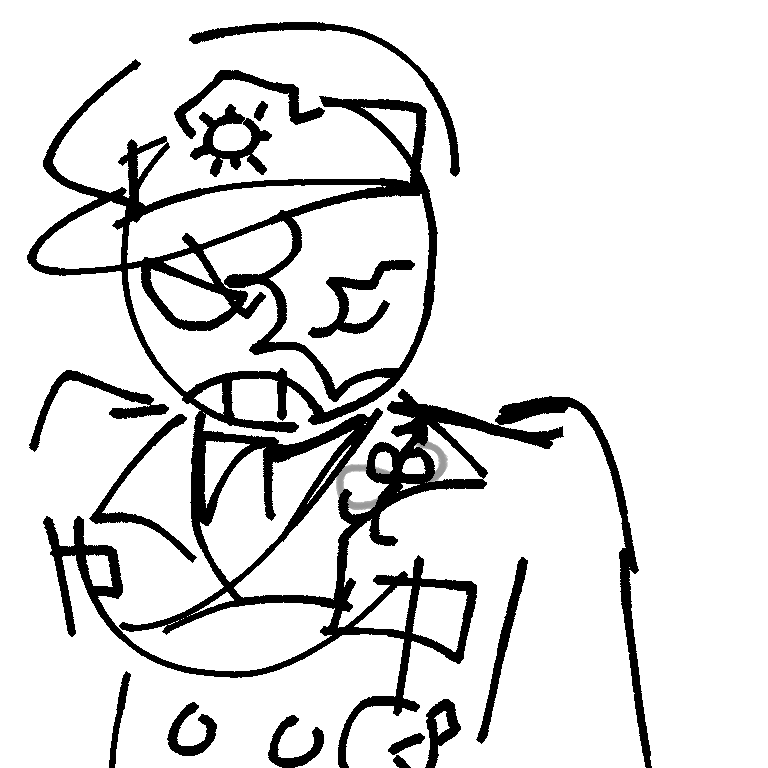 He is the one that proposed the idea to transform tile people into weapons so he sends out troops to neutralize enemy soldiers and invades homes to take tile people to concentration camps, taking away their autonomy. They were looking specifically for people with the bomb syndrome, which they would beat them to neutralize them and store them into shells of mines that can be used in battlefields. Those who do not fit the description will be transferred to a different site to drop them into the pit.